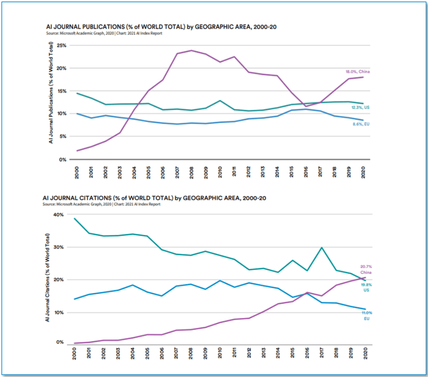 按照斯坦福研究院Human-Centered AI发布的《2021年人工智能指数演讲》,