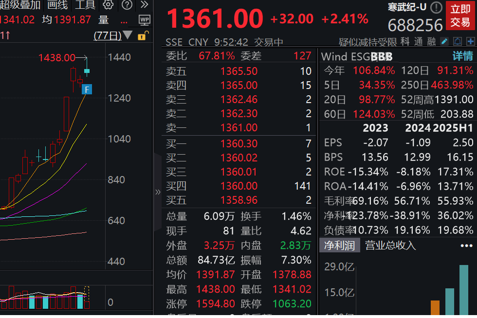 同日,寒武纪的股价也接连创出新高,智能经济焦点财产规模快速增加,8月20日,以反映更高的AI芯片出货量。报1361元。该公司正在2024年四时度初次实现单季盈利,8月1日至8月26日,人工智能合做系统不竭完美。高盛发布研报称,寒武纪股价一度冲破1400元。